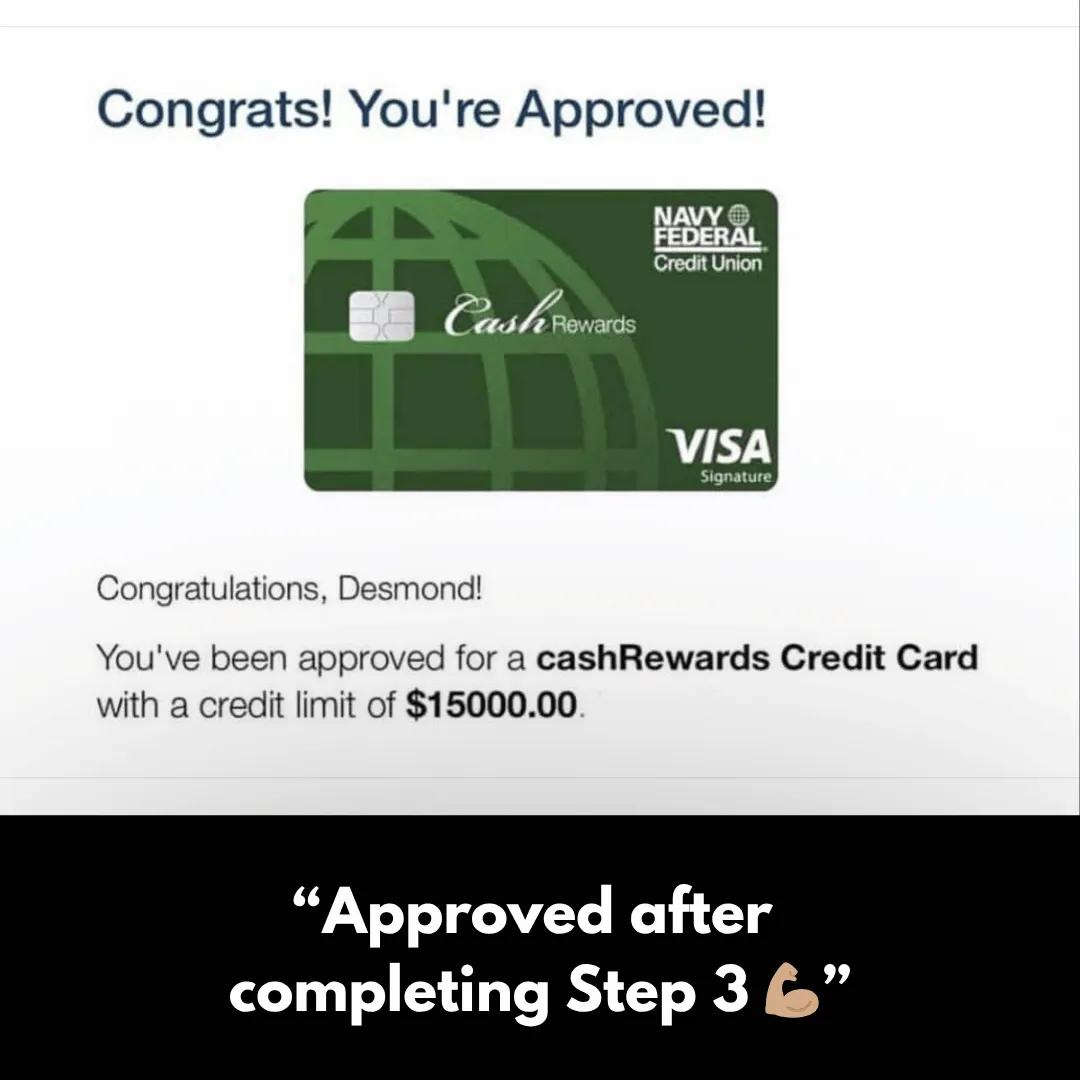 Before this, my credit score was stuck at 540. Within 60 days, I removed collections, raised my score, and finally got approved for a $15,000 Navy Federal card. TK makes it simple.